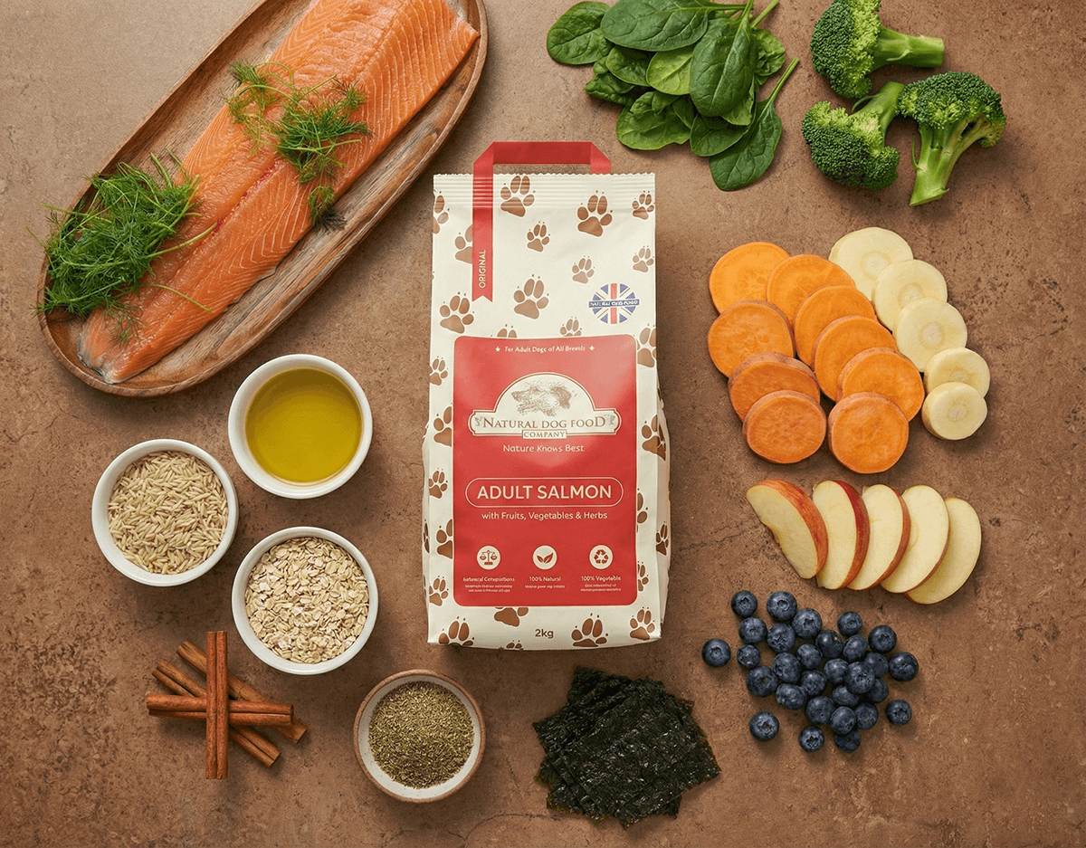 At The Natural Dog Food Company, we know that a dog’s optimal nutrition comes from natural, wholesome ingredients. That’s why our salmon range is free from artificial additives, wheat, maize, dairy, and soya. We also avoid by-products, fillers, and derivatives, using only 100% human-grade ingredients to ensure the very best for your dog.