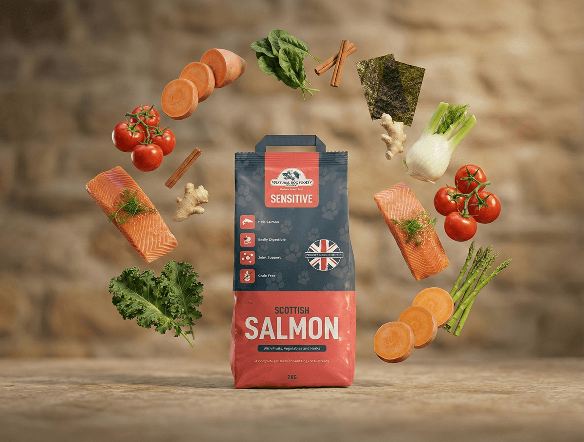 At The Natural Dog Food Company, we believe dogs deserve food as nature intended. That’s why our Sensitive range contains 65% premium Scottish salmon, offering a highly digestible protein source rich in essential Omega-3 fatty acids to help your dog thrive.